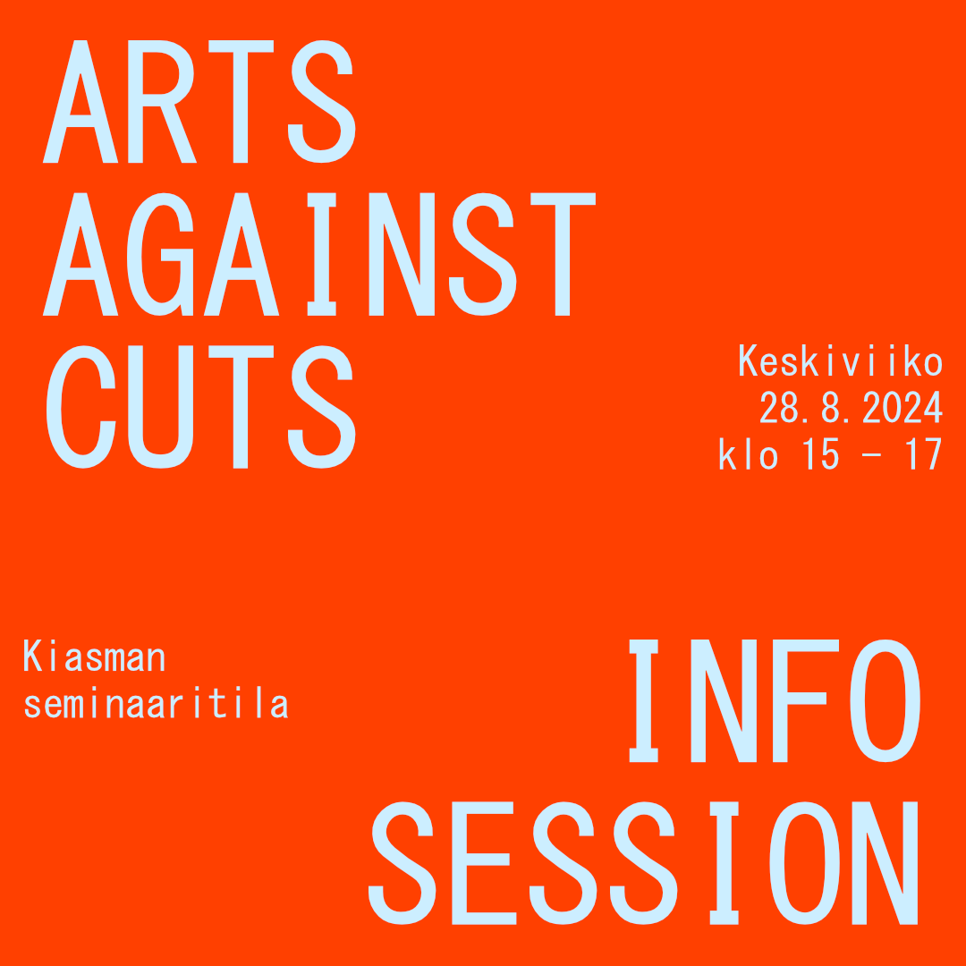 Den 28:e augusti arrangeras på Kiasma en informationsträff där representanter från Konstnärsgillet i Finland, Musikernas fackförbund, Finlands Teatrar och andra organisationer kommer att diskutera den nuvarande regeringens politik och förslagen om de kraftiga nedskärningarna av konst och kulturbudgeten. Informationsträffen strävar efter att dela viktig information, bilda solidaritet över konstfältet, och forma kollektiva strategier för framtiden av en hållbar konst och kultursektor.