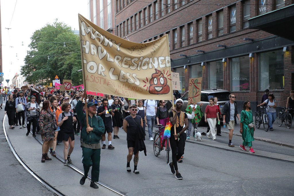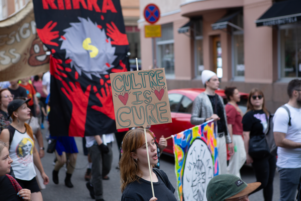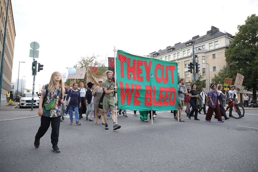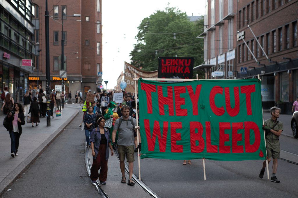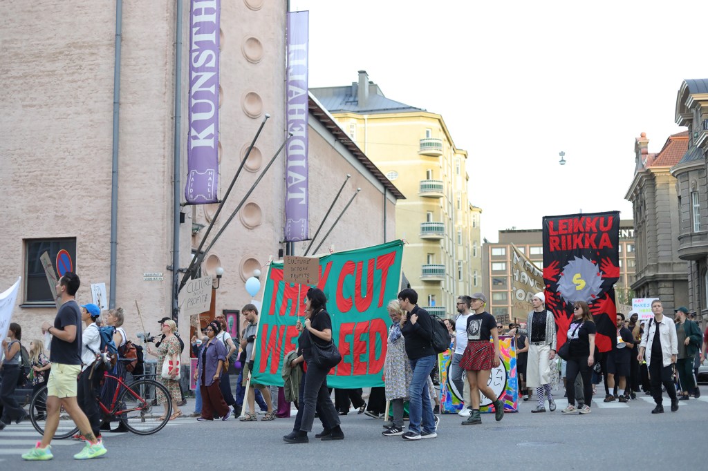 If you want to prepare banners for the March join on Saturday 10th of Aug from 5pm till 8pm and on Monday 12th of Aug from 1pm till 5pm to Arts Against Cuts banner workshop at Museum of Impossible Forms (Aallonhalkoja 9, Sompasaari)